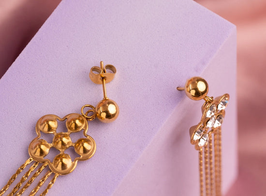 Aretes Flores Circones Lazos Dorados Ref: B607