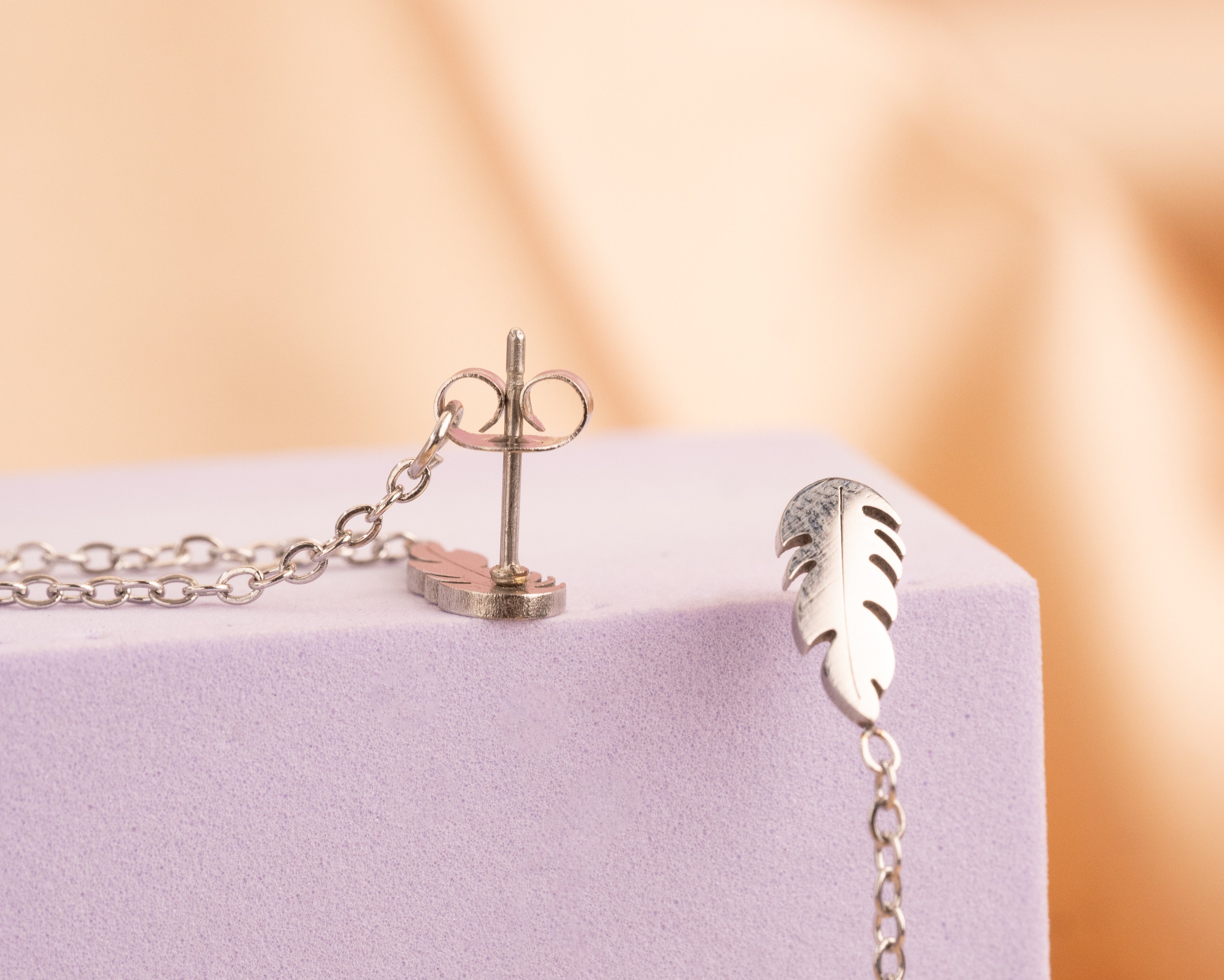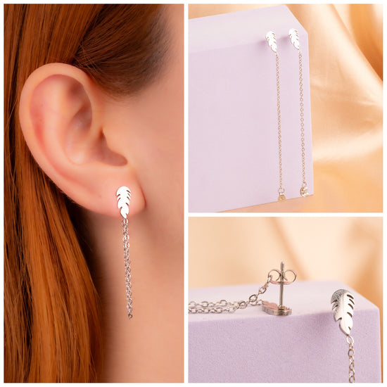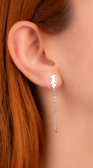 Aretes Hojas Cadenas Plateados Ref:B1344