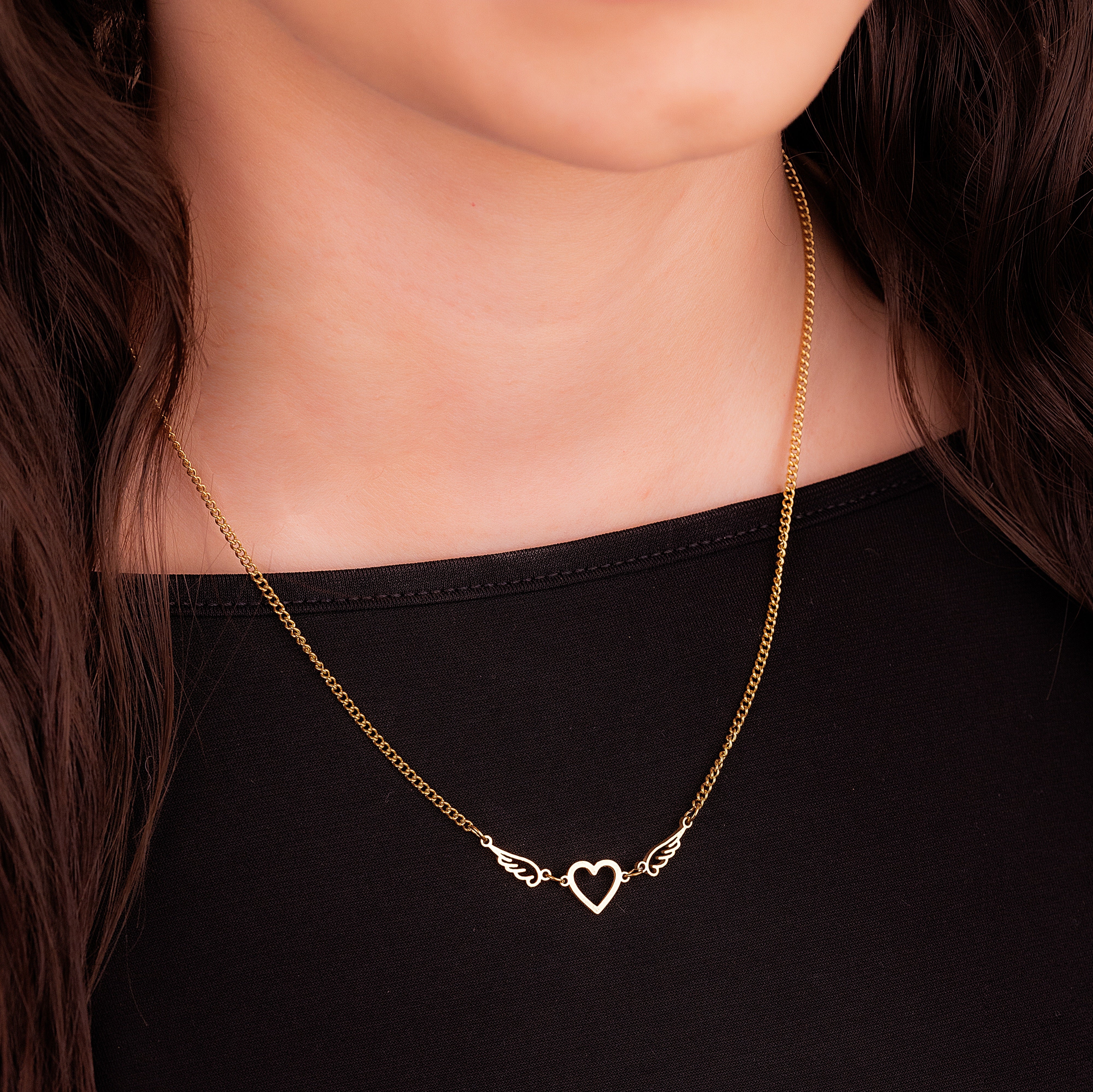 Cadena Corazón Alas Dorada Ref: C047