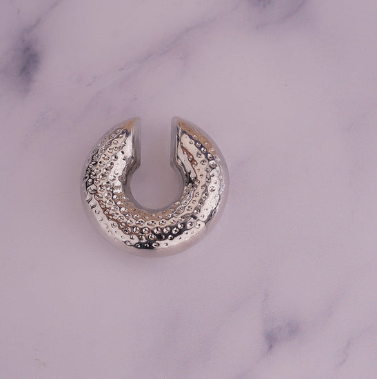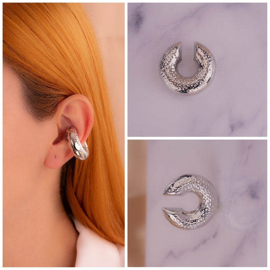 Ear Cuff Chunky Martillado Plateado Ref:E034