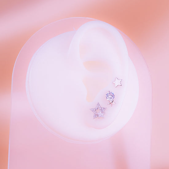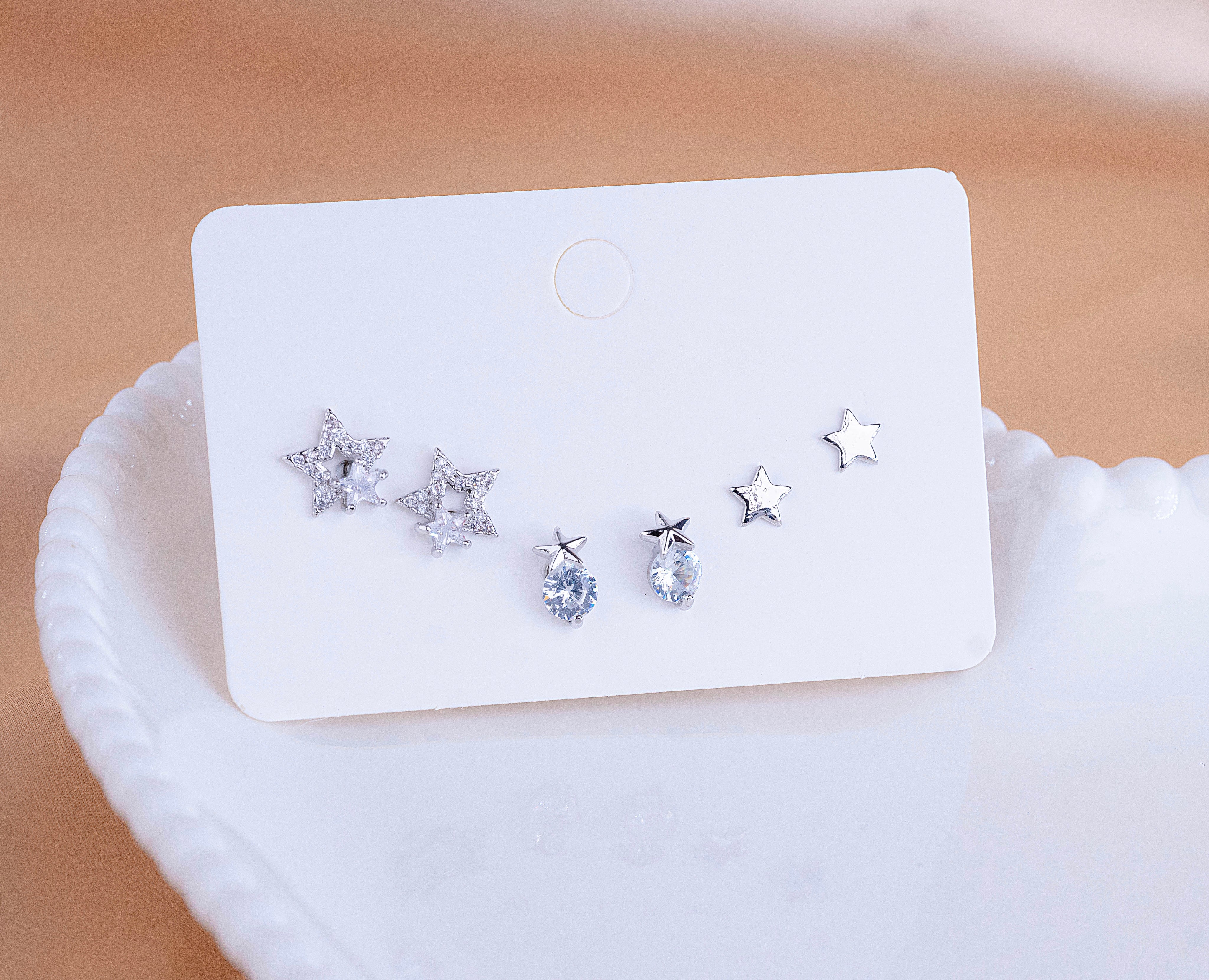 Set X 3 Pares Topitos Estrellas Plateados Ref: K114
