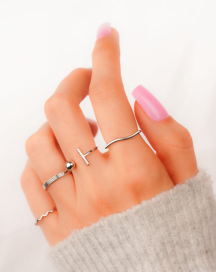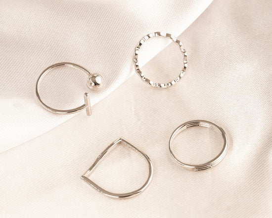 Set X 4 Anillos Balin Ondas Plateados Ref: J089