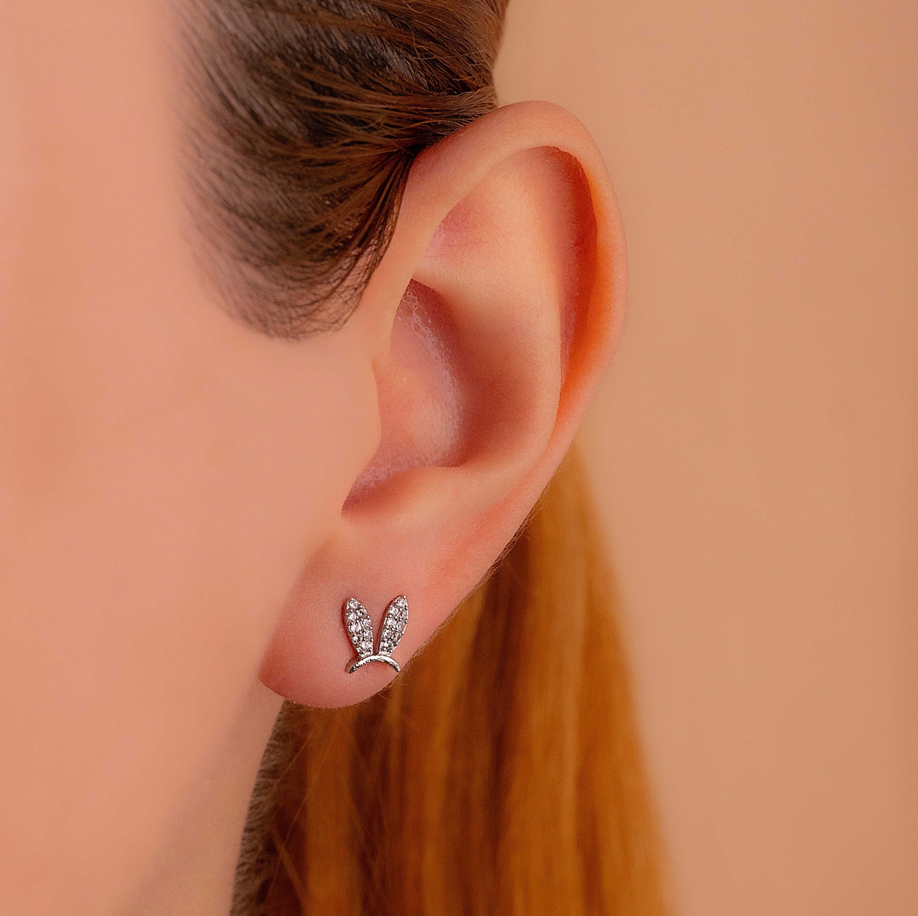Topitos Orejas Conejo Plateados Ref:L1594